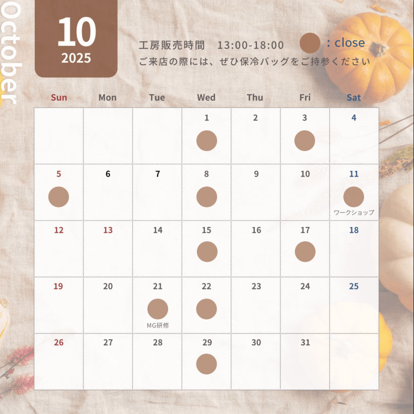 ただ今の工房販売時間は、13時〜18時とさせていただきます。